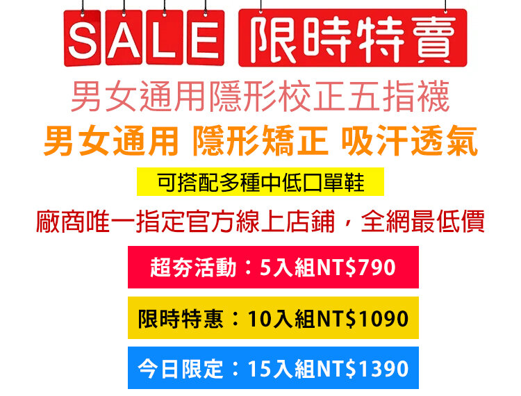 【防滑防臭】男女通用隱形校正五指襪