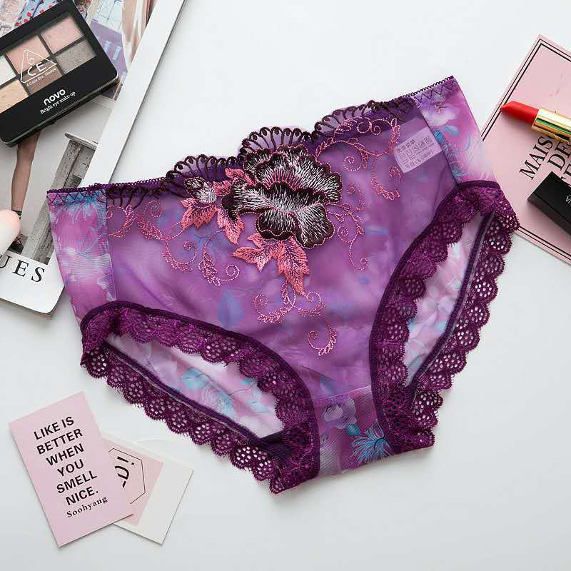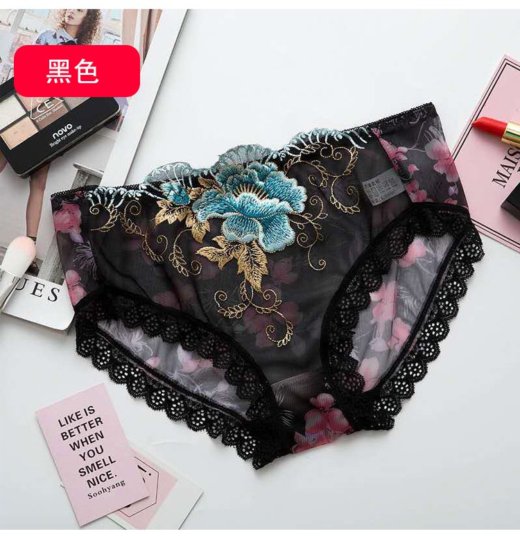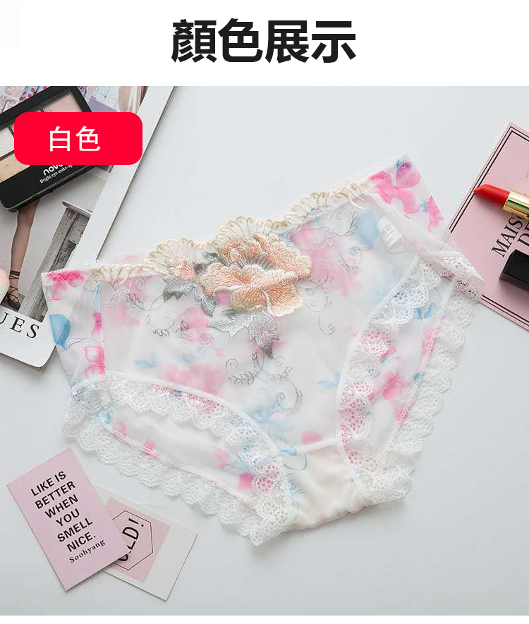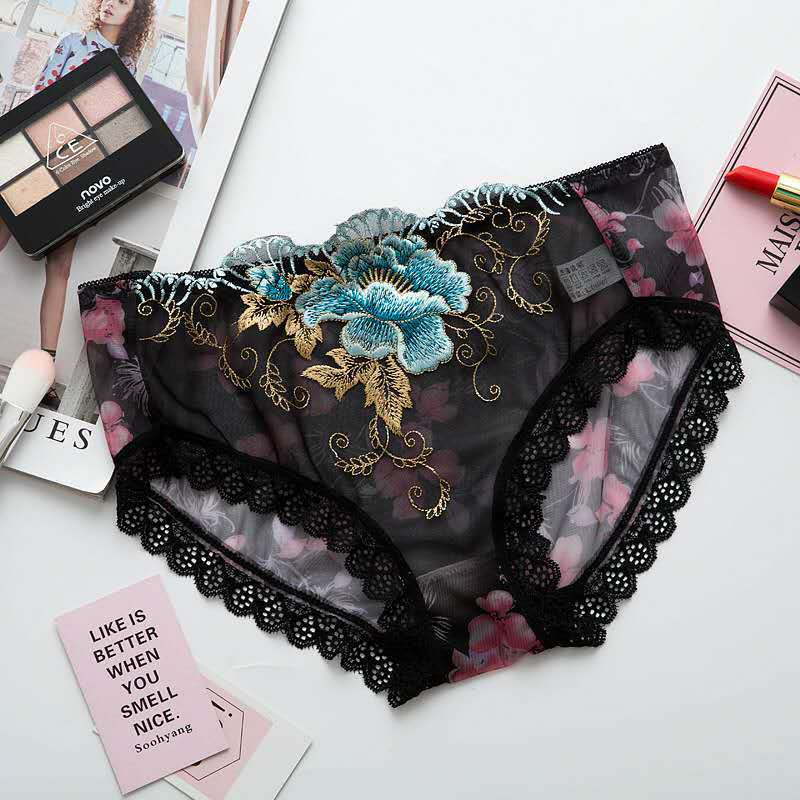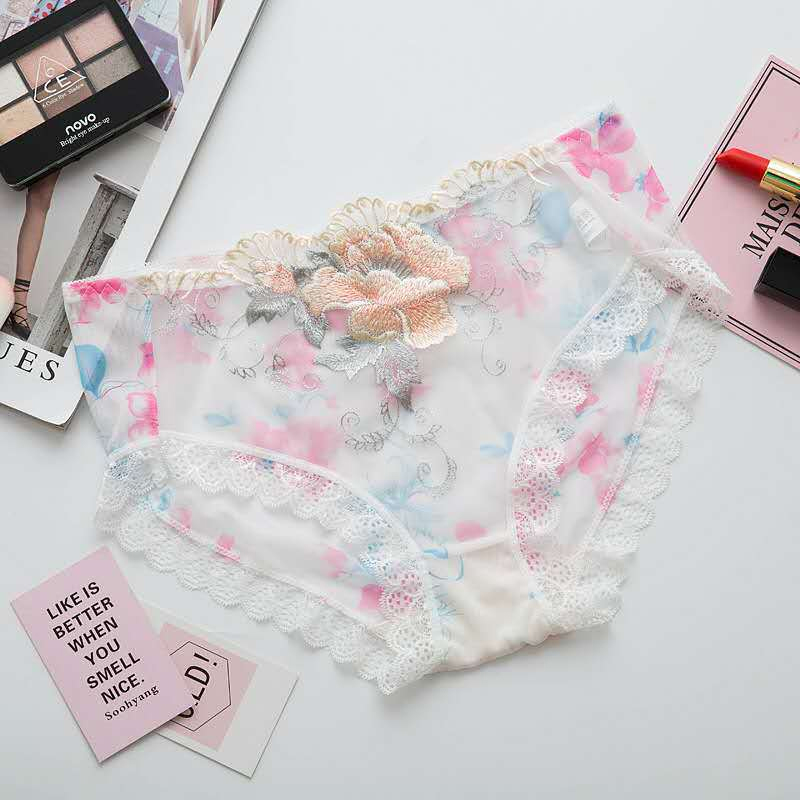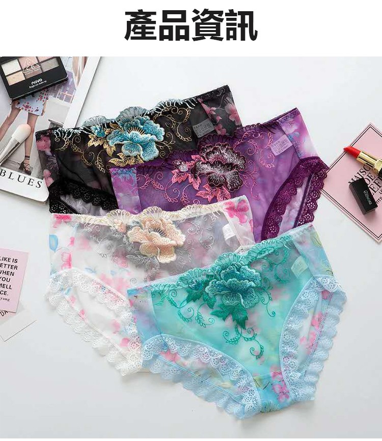 刺繡網紗低腰內褲